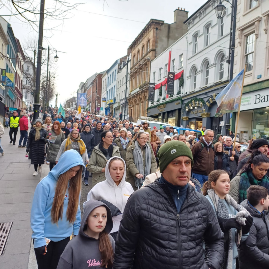 Over 4000 people gathered in the streets of Derry on February 1 for a powerful Eucharistic Procession, an event that surpassed the initial expectation of less than 1000 attendees. The procession, described by Anto Crossey, who took part in the procession, as “a great spectacle” and “a powerful witness,” displayed the city’s religious fervour.
