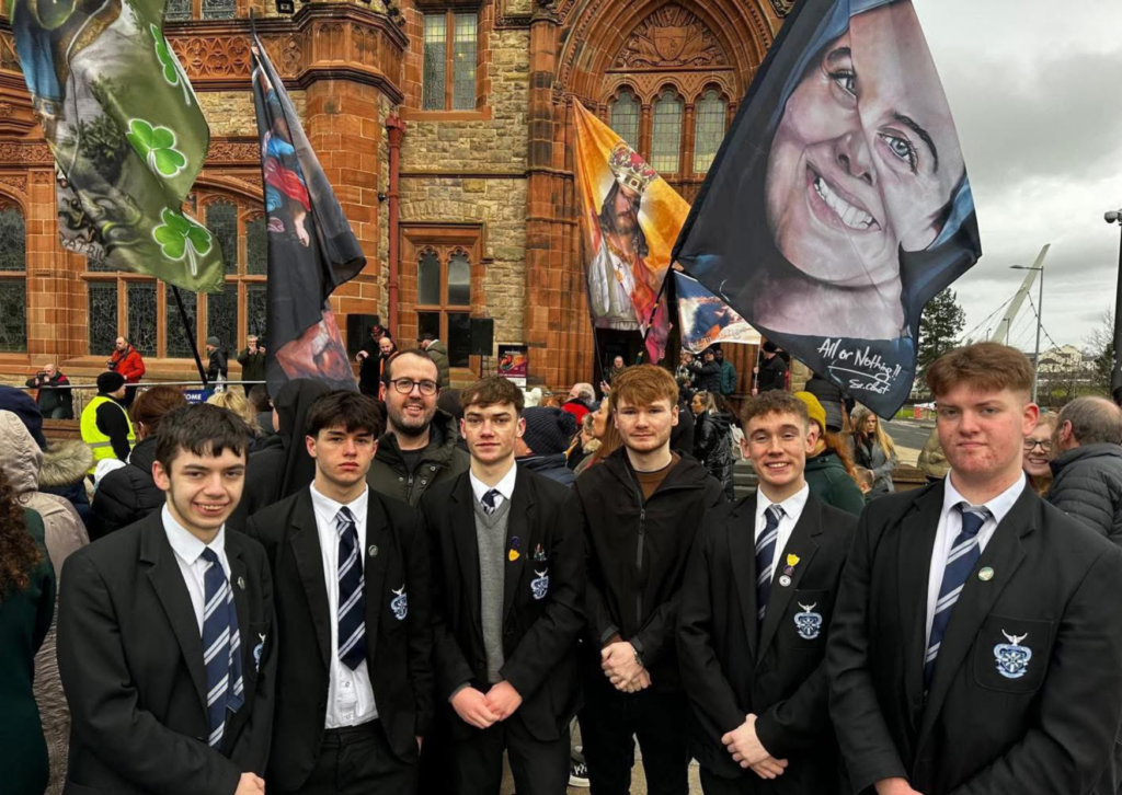 James Tourish, who attended the procession explained to The Irish Catholic that it was “a true demonstration of a growing force” in the diocese. He noted the participation of youth, including school and parish groups, that witnessed the involvement of younger generations in the faith. He added, “It was the largest display of the Catholic faith that the city has seen in a long time,” pointing to the recent declaration of Sr Clare Crockett as a Servant of God, which has strengthened the Catholic community. The late Derry nun’s cause was represented, with many holding banners, flags, and prayer cards in her honour.
